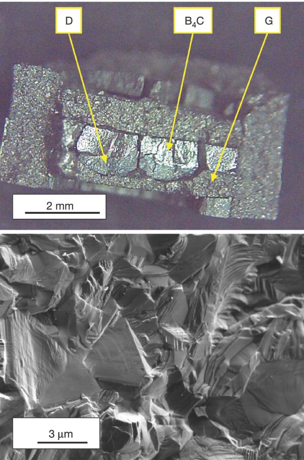 Superconductivity in diamond Nature,Top central part the high-pressure synthesis cell after subjecting graphite and BC to high-pressure high-temperature conditions. D diamond; G,Superconductivity in diamond Nature,Top central part the high-pressure synthesis cell after subjecting graphite and BC to high-pressure high-temperature conditions. D diamond; G